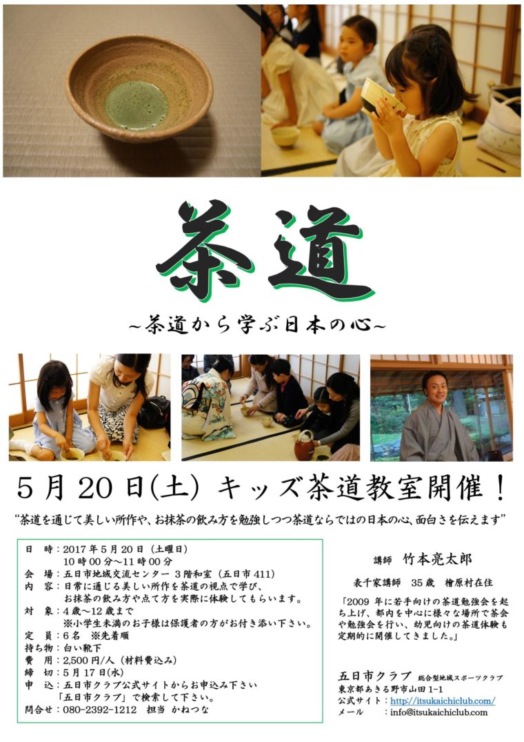5月20日(土)に五日市地域交流センターの和室で「キッズ茶道教室」を行います。