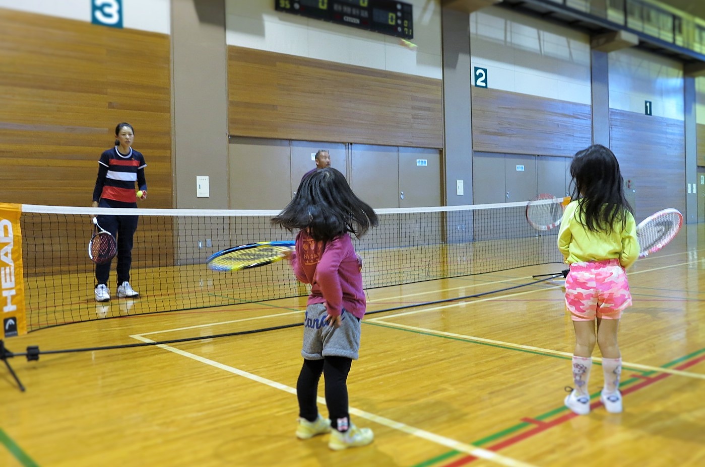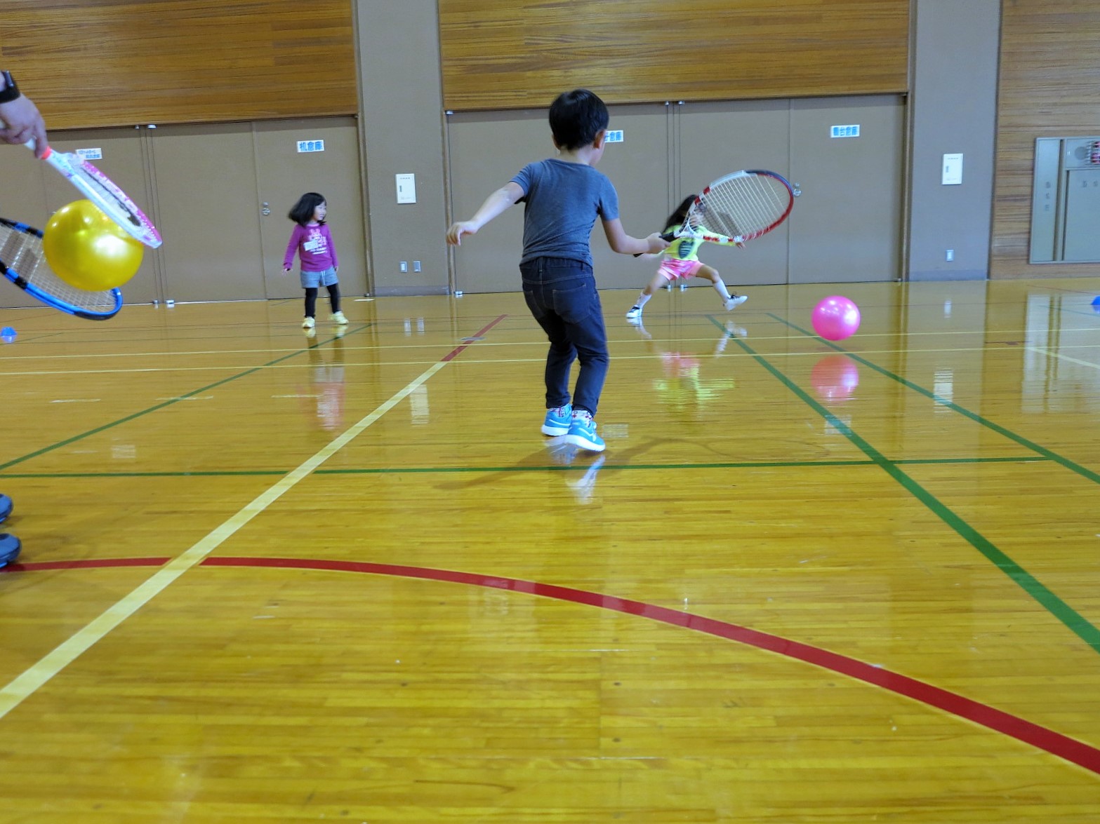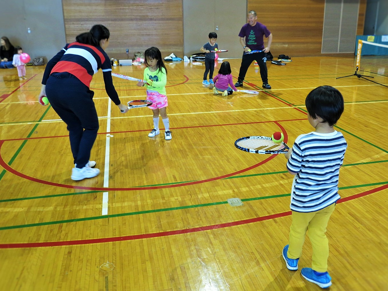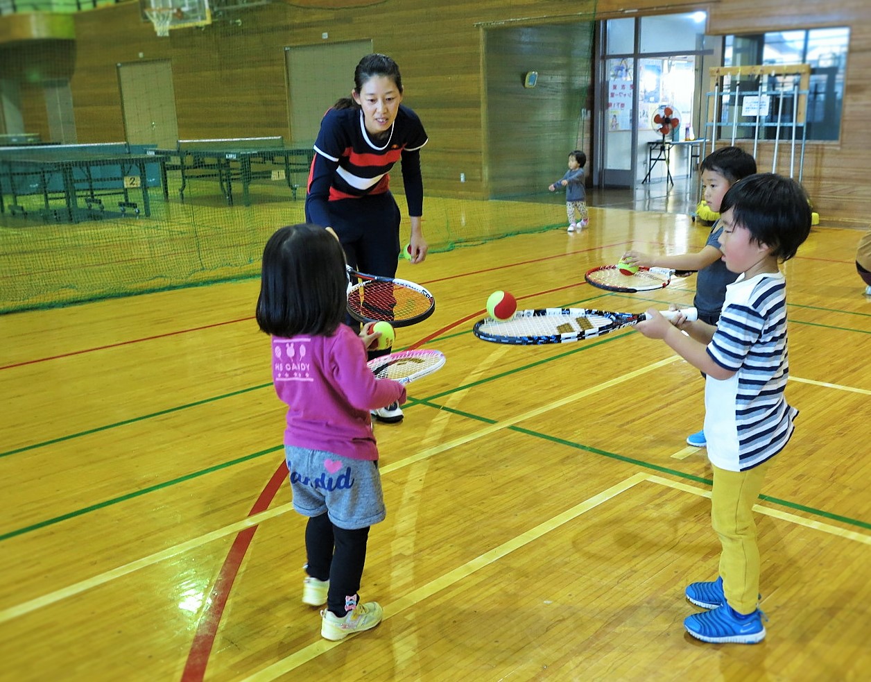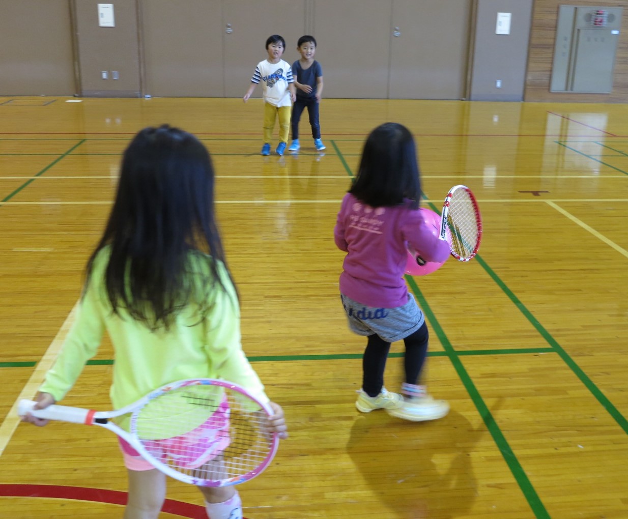 前半は運動能力向上、空間認知能力、ラケットワークが狙いです。
