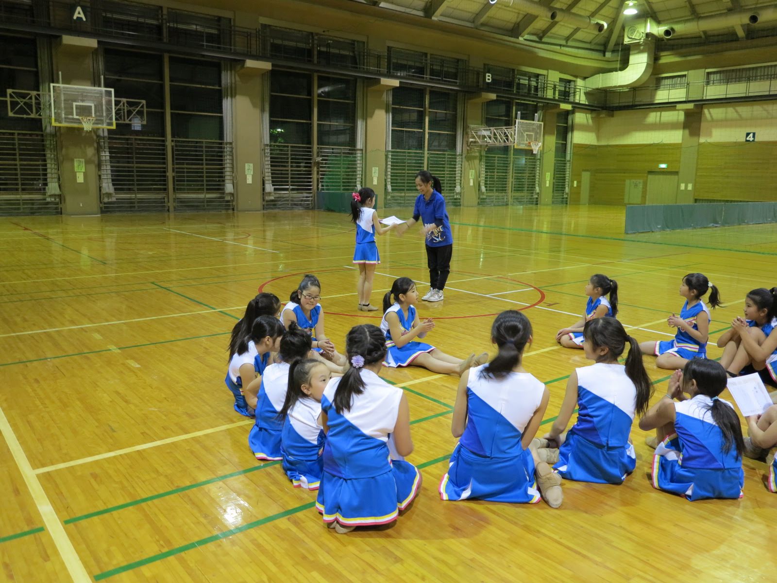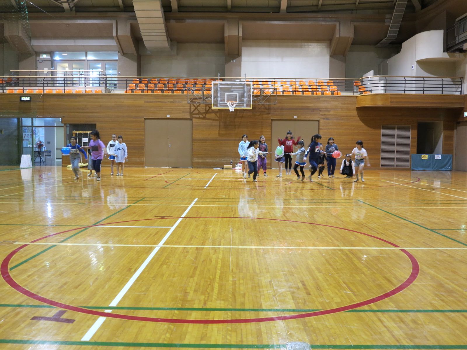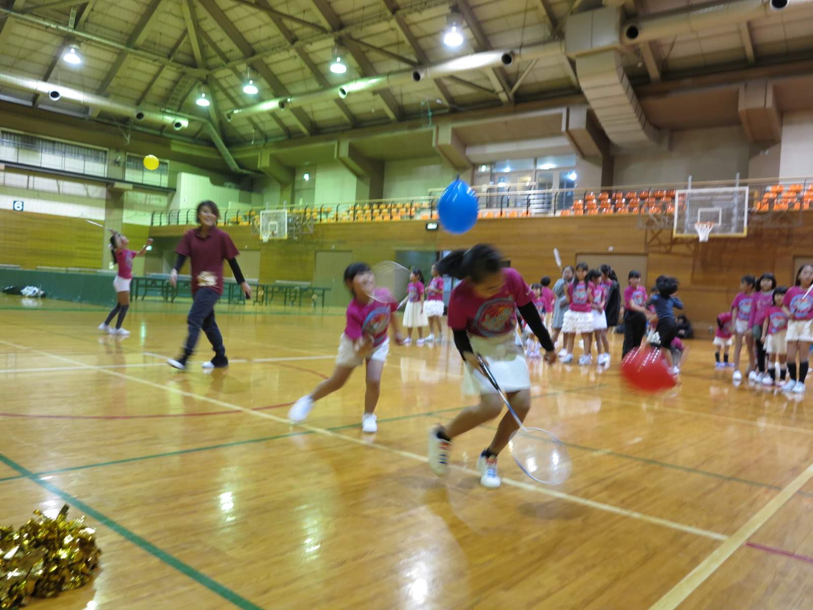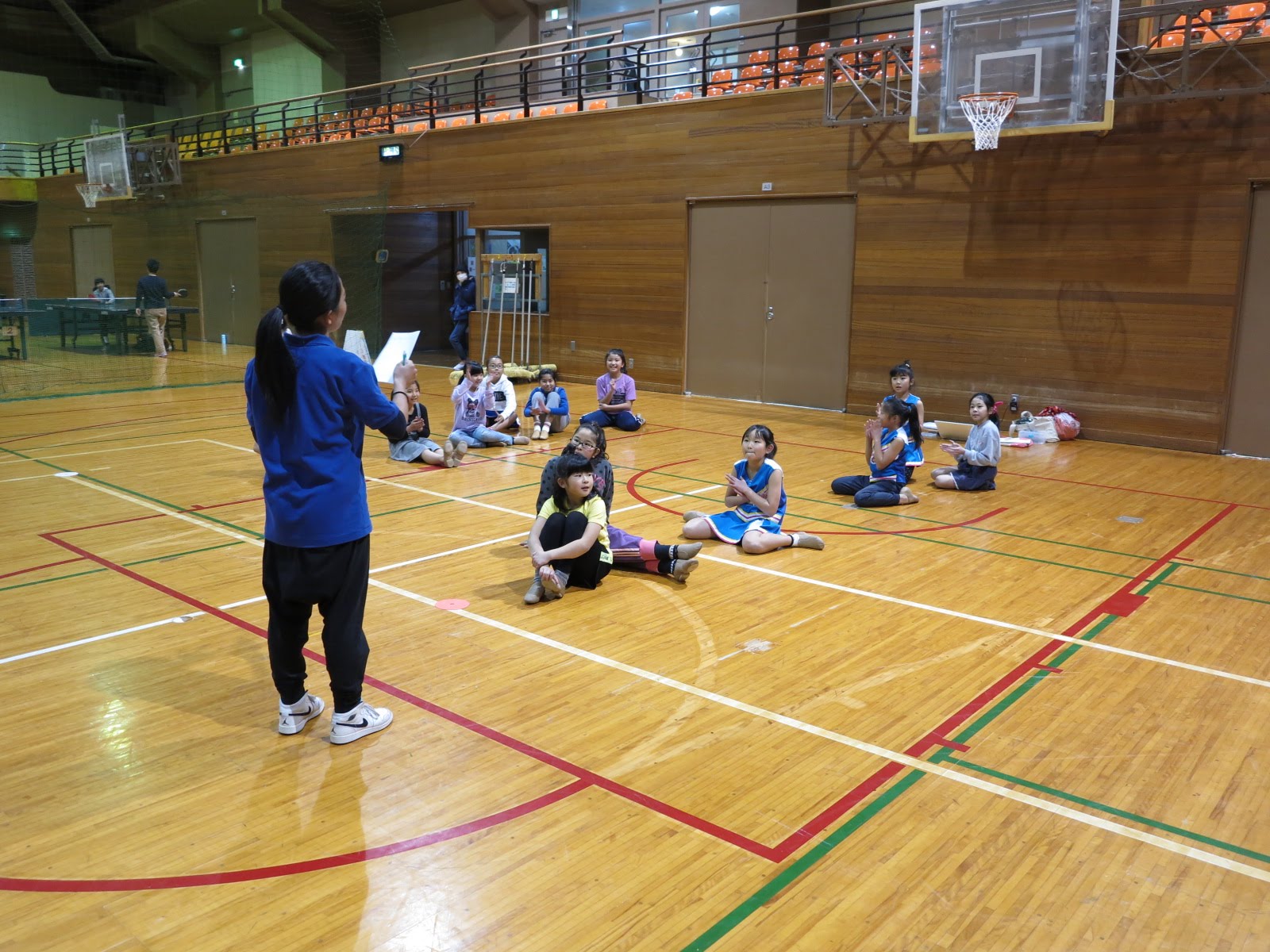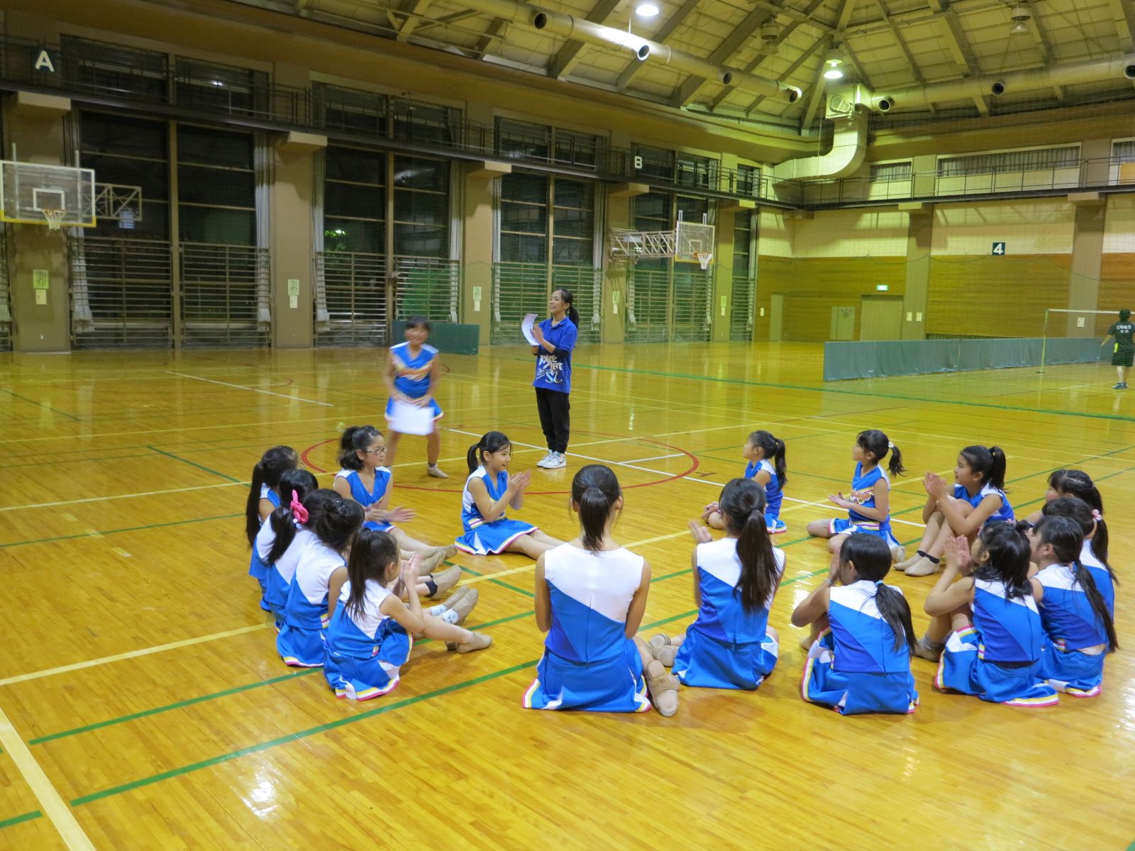 キッズチアダンススクール「candy pop」 。毎回レッスンに使用している体育館でミニ発表会&レクリエーションを行いました。木曜日クラスには小さな助っ人たちが。金曜日クラスは少し大人なパーティーチューンをBGMに。