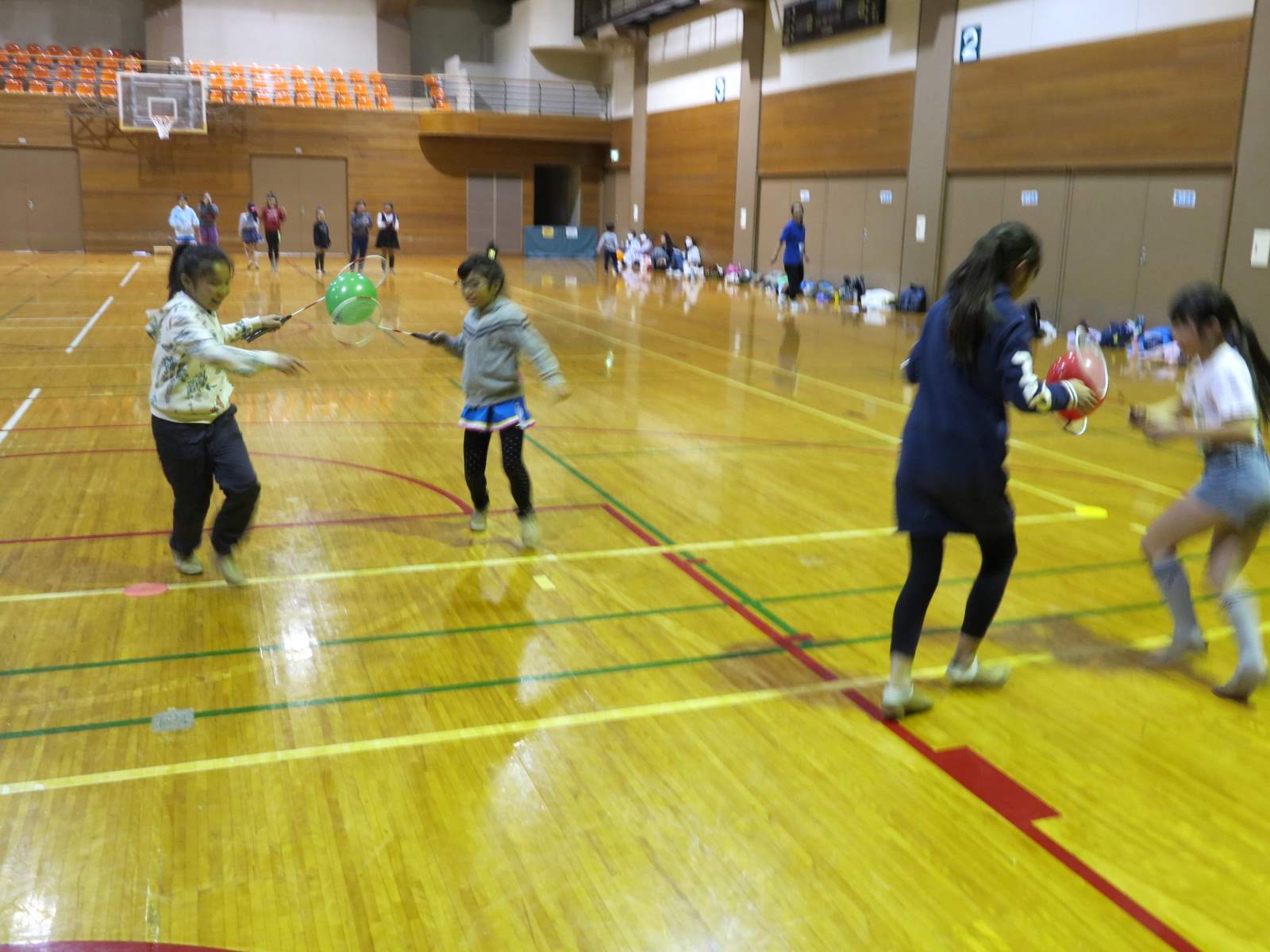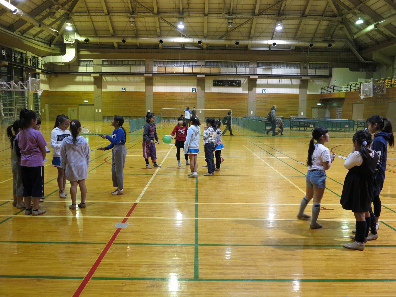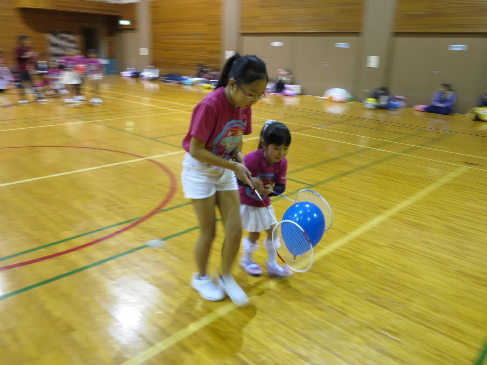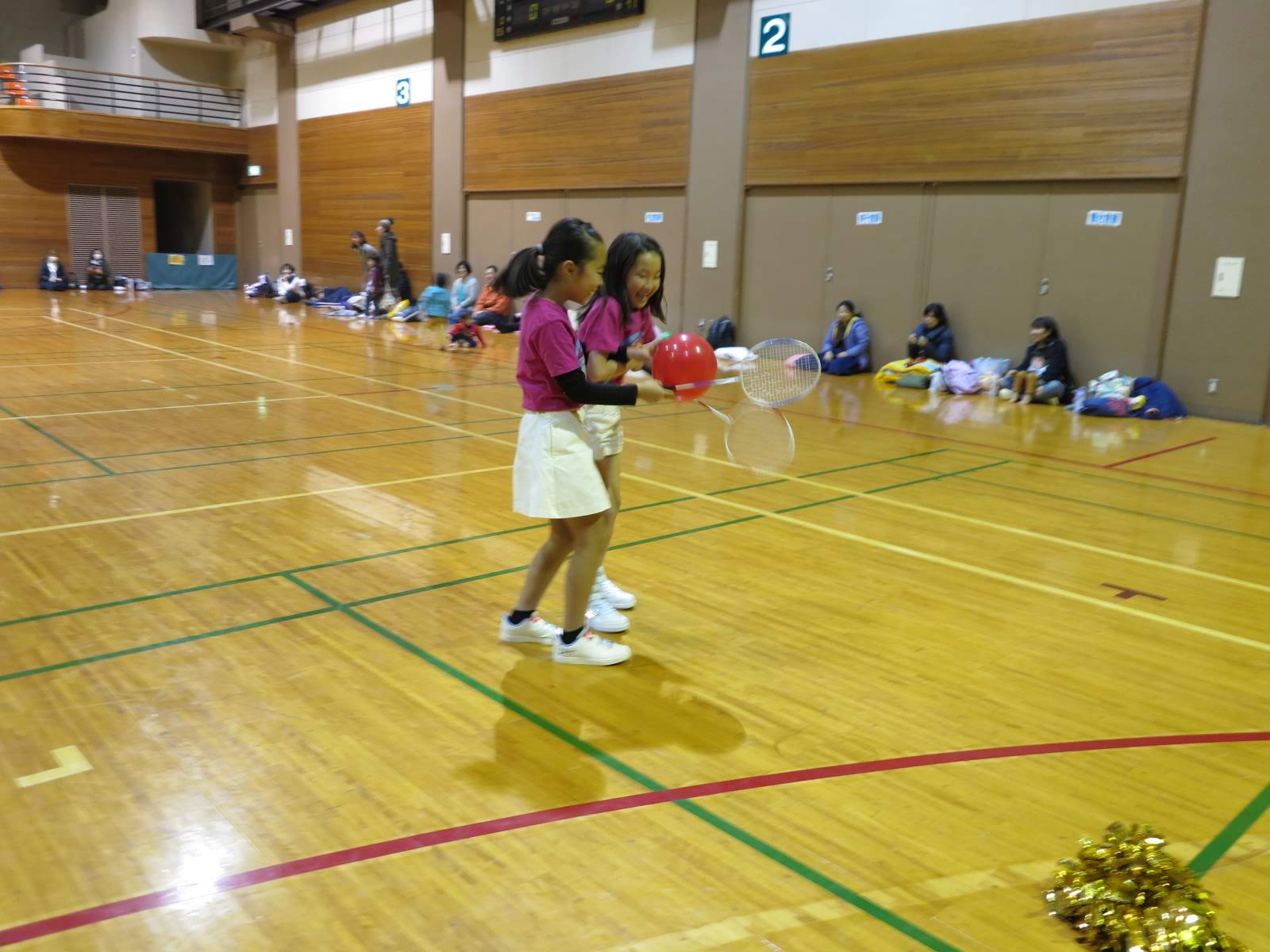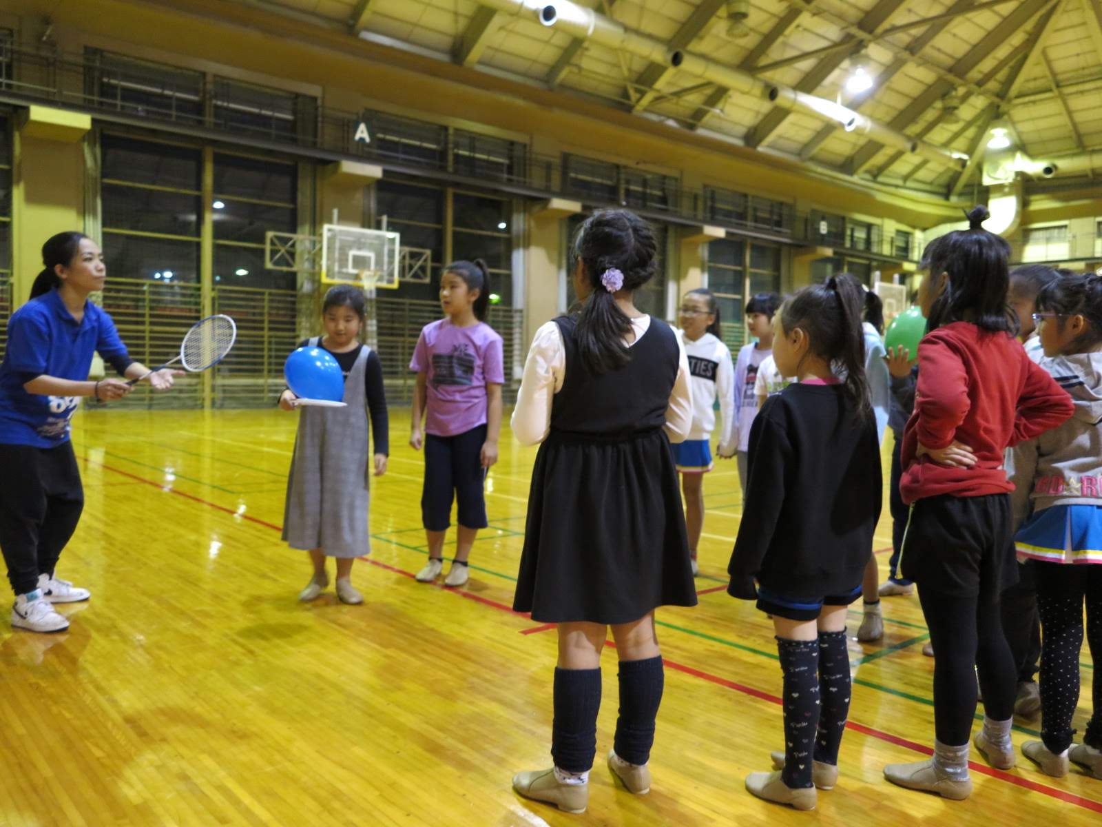 キッズチアダンススクール「candy pop」 。毎回レッスンに使用している体育館でミニ発表会&レクリエーションを行いました。木曜日クラスには小さな助っ人たちが。金曜日クラスは少し大人なパーティーチューンをBGMに。