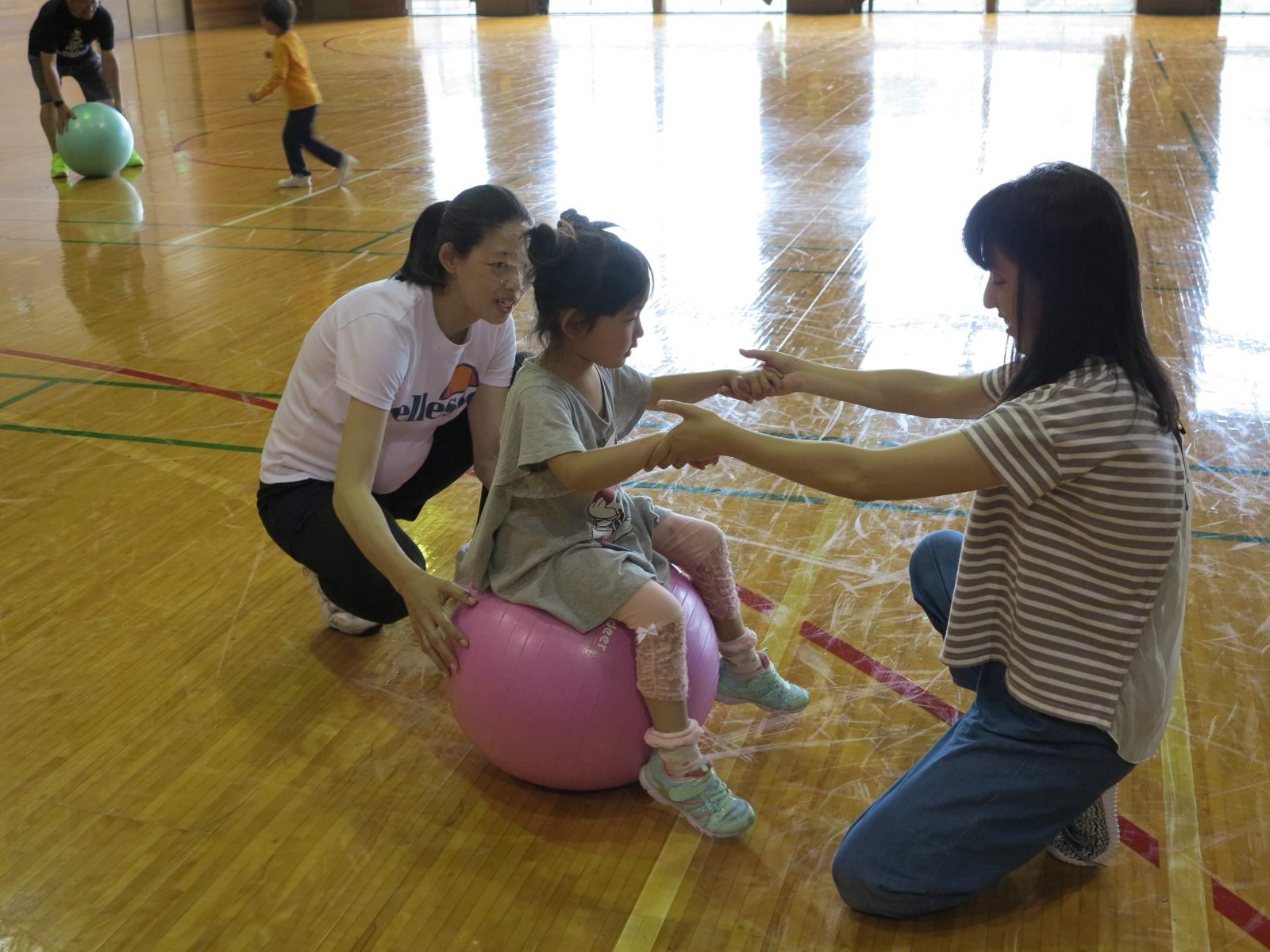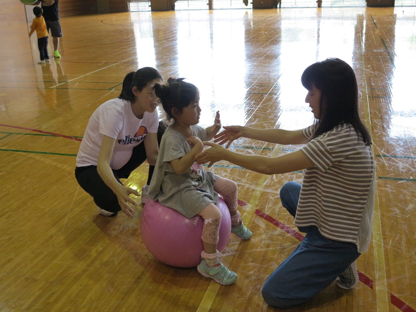 バランスボールは大人のための健康道具だと思っていたので、子どもたちのストレッチや全身運動に取り入れらてるのを興味深く拝見しておりました。ボールを持ち上げて大きな円を描く運動は逆に大人でも効果がありそうですね。