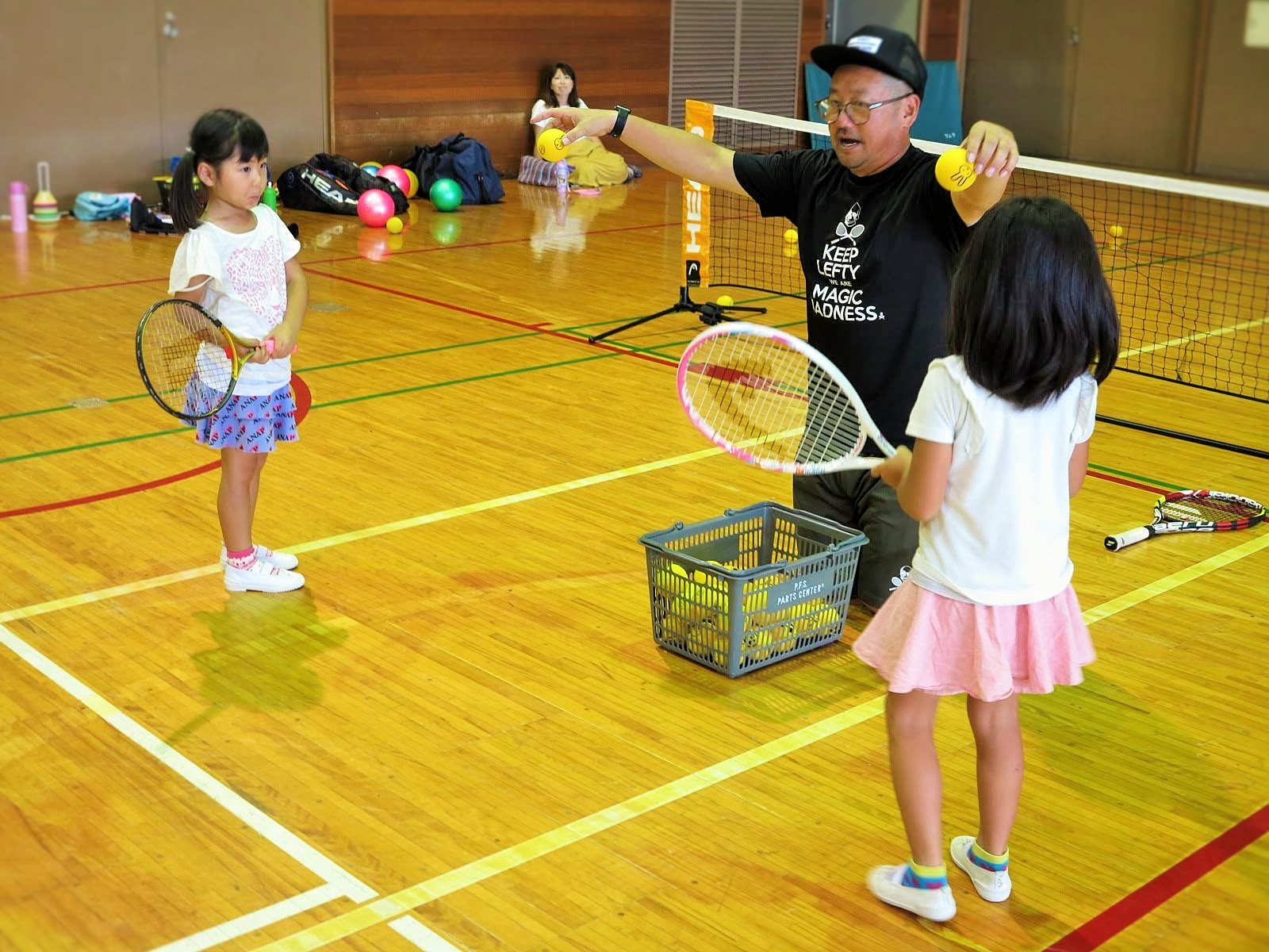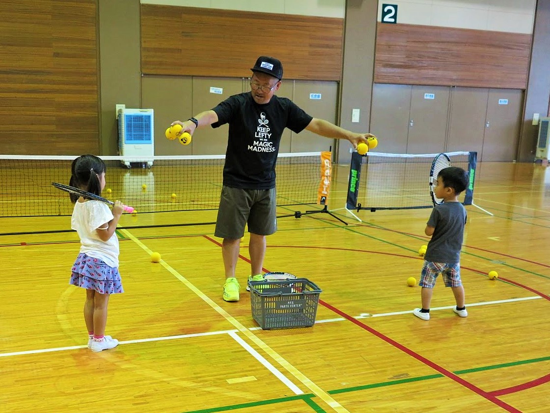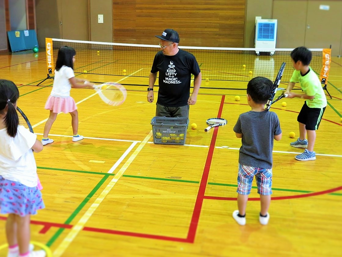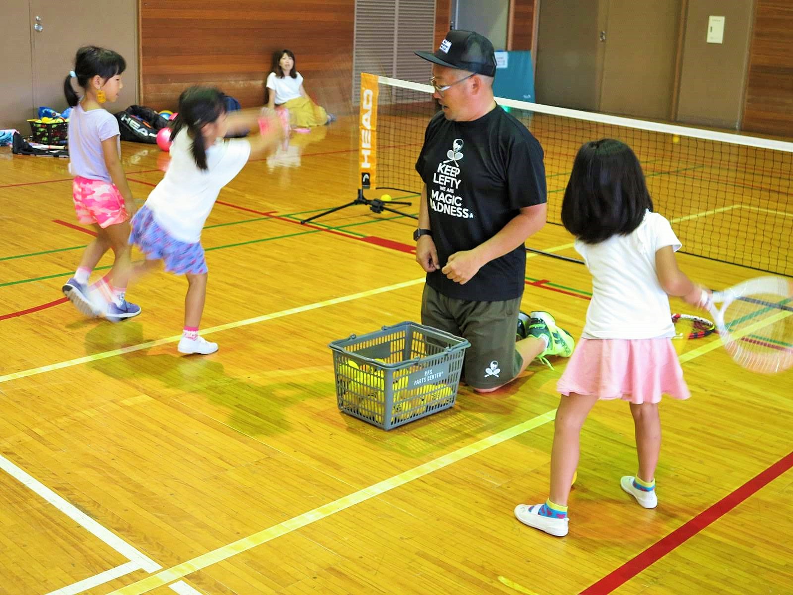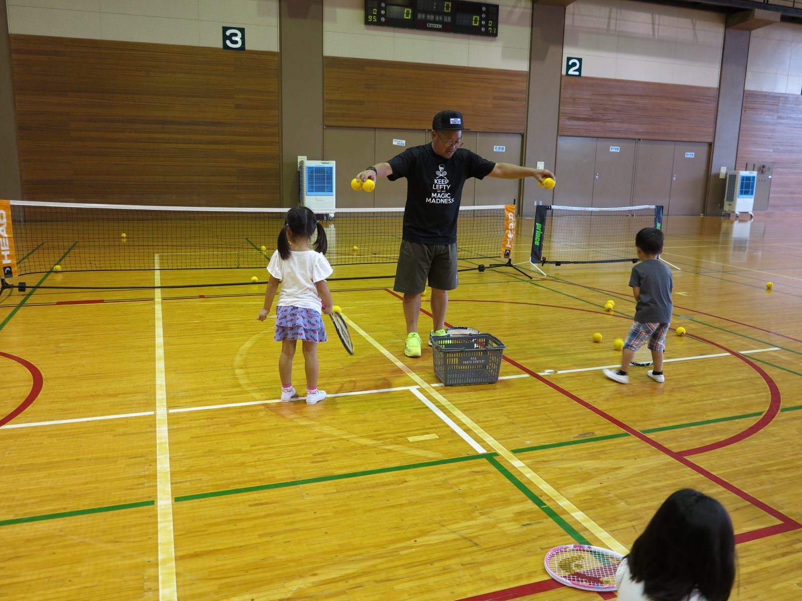 講師は元テニスプレーヤーの岡本聖子(おかもとせいこ)さん。 小さい頃から元プロに教えてもらえる環境はなかなか贅沢ですね。