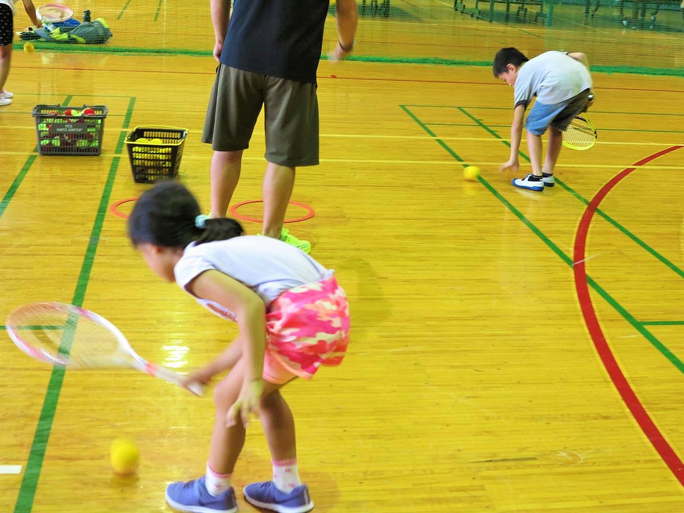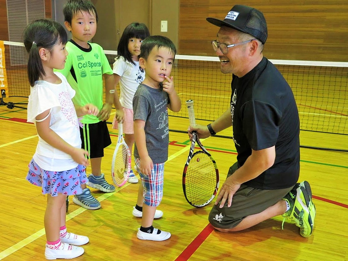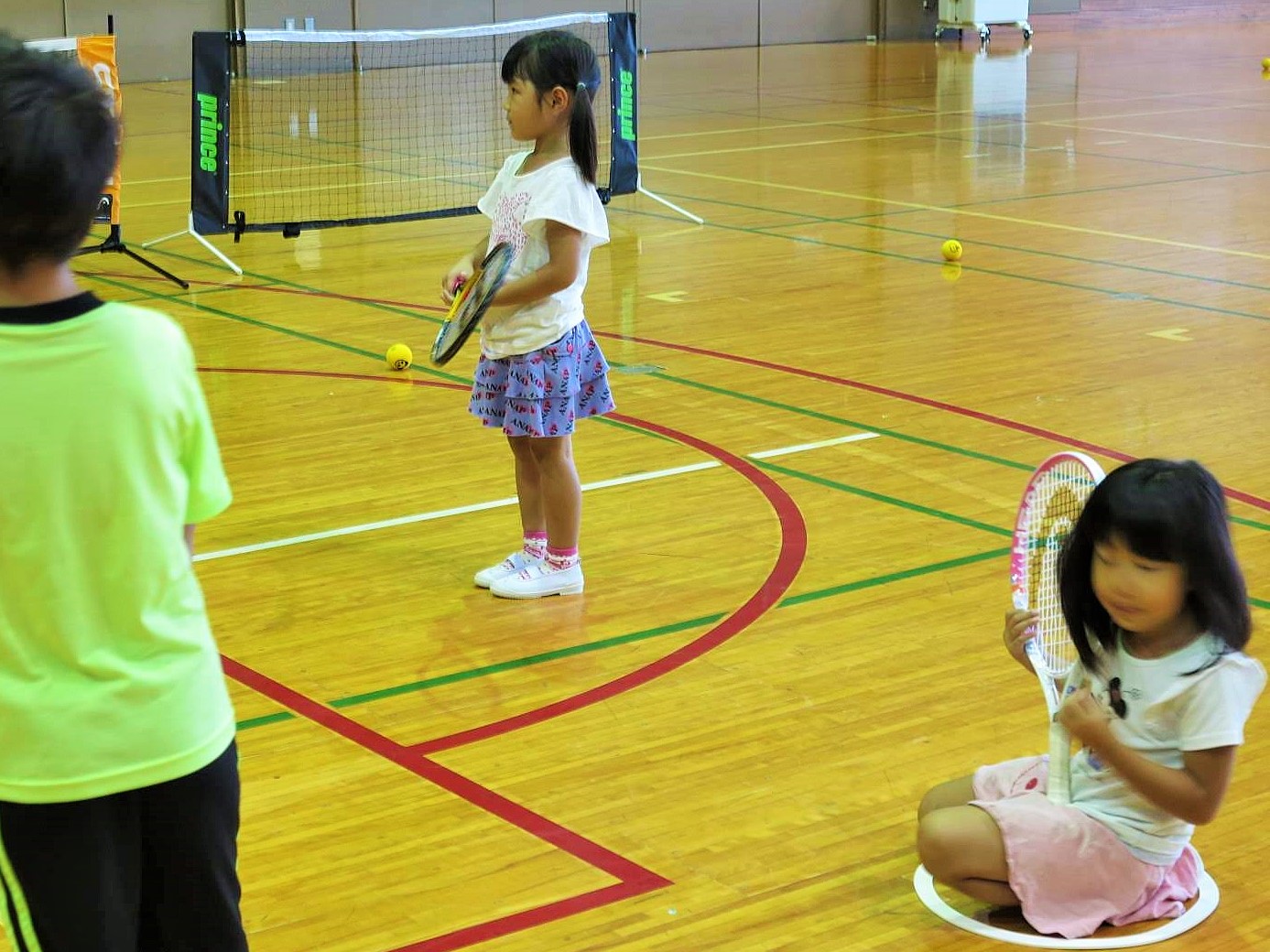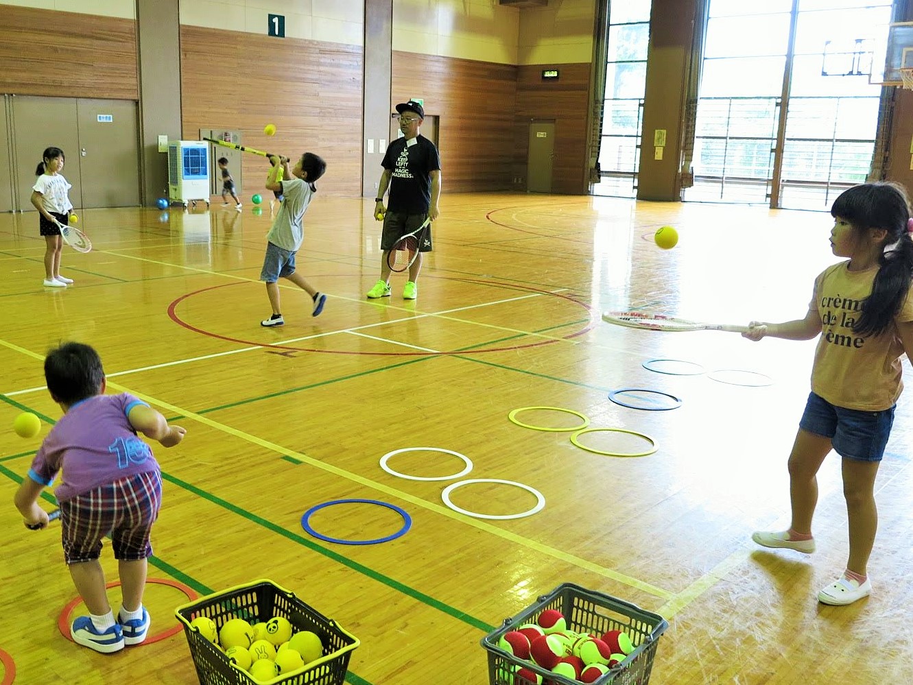 講師は元テニスプレーヤーの岡本聖子(おかもとせいこ)さん。 小さい頃から元プロに教えてもらえる環境はなかなか贅沢ですね。